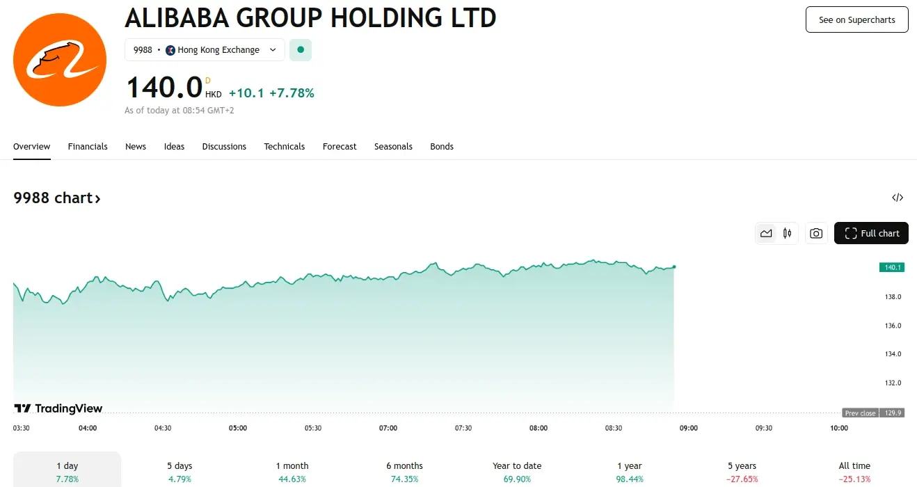 - Alibaba’s gains are amplified by positive market sentiment in Chinese tech stocks and supportive government policies emphasizing AI development and consumer spending.
