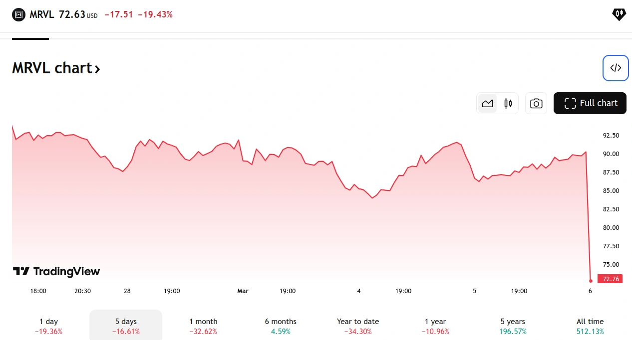 Disappointing Revenue Forecast Sent Marvell Technology Shares Tumbling 16%