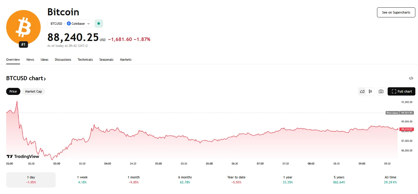 - Bitcoin failed to stay above the $90,000 threshold on Friday. The 5.7% drop, testing $85,000, followed the $92,000+ surge Bitcoin experienced on Thursday.