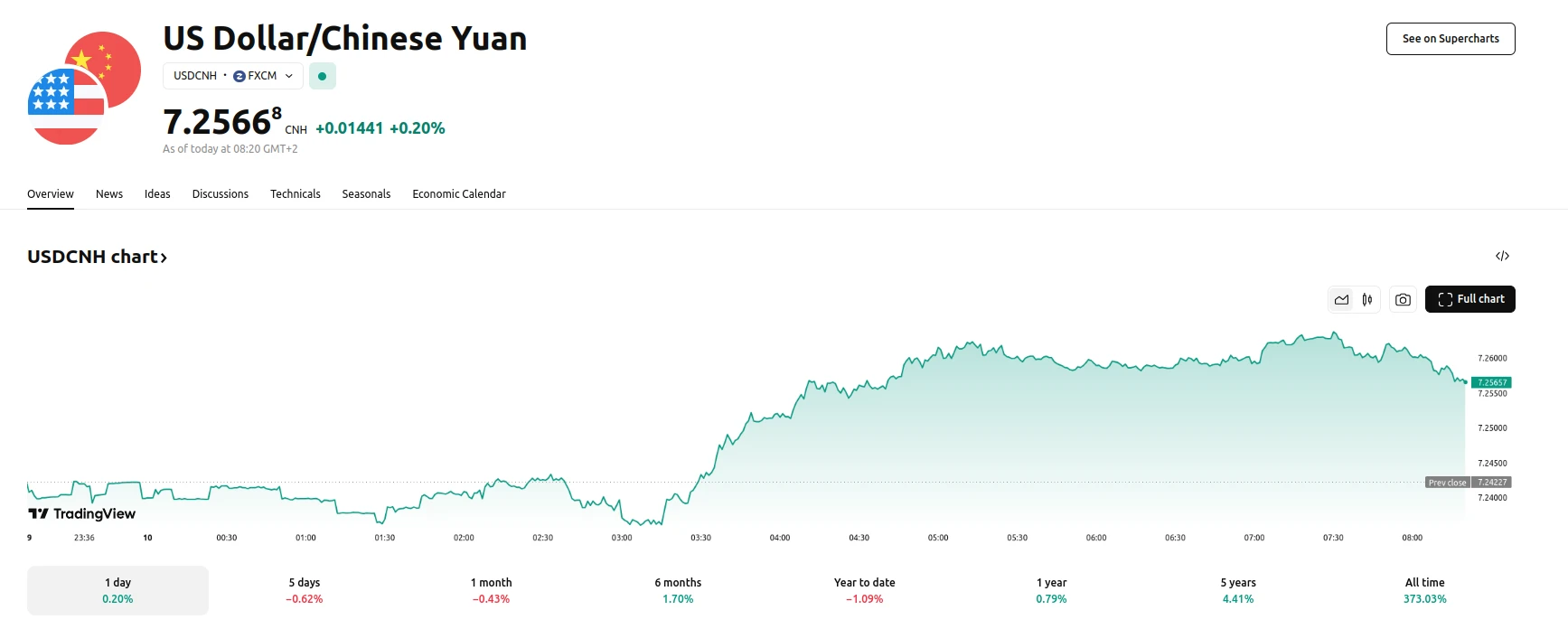 Trade Tensions and Economic Data Weigh on Currency: USDCNH Dips 0.62% in Five Days