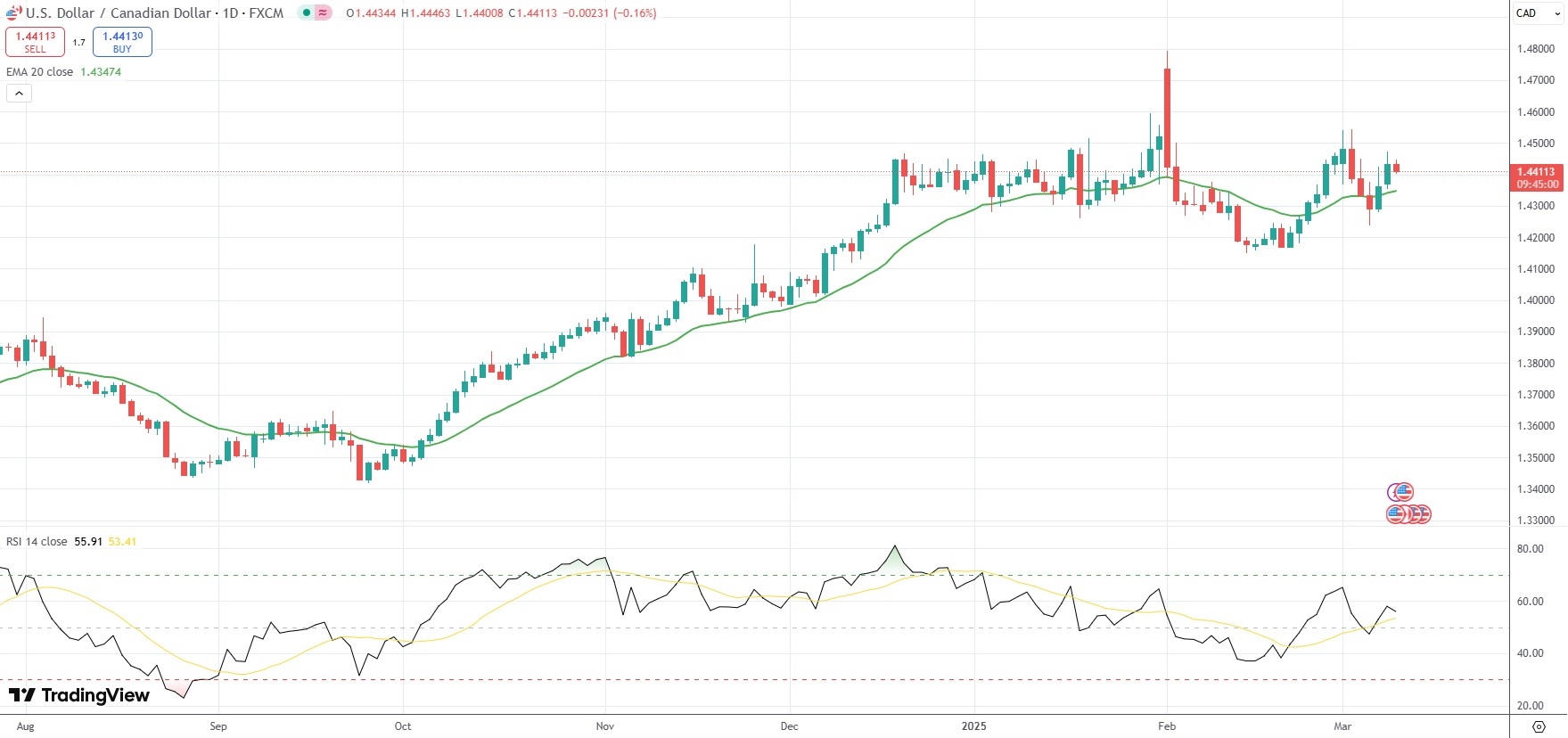 The USD/CAD currency pair was last down 0.16% on the day to trade at 1.4411. Yesterday the major Forex pair went up as high as 1.4472, or its highest level since March 4th.