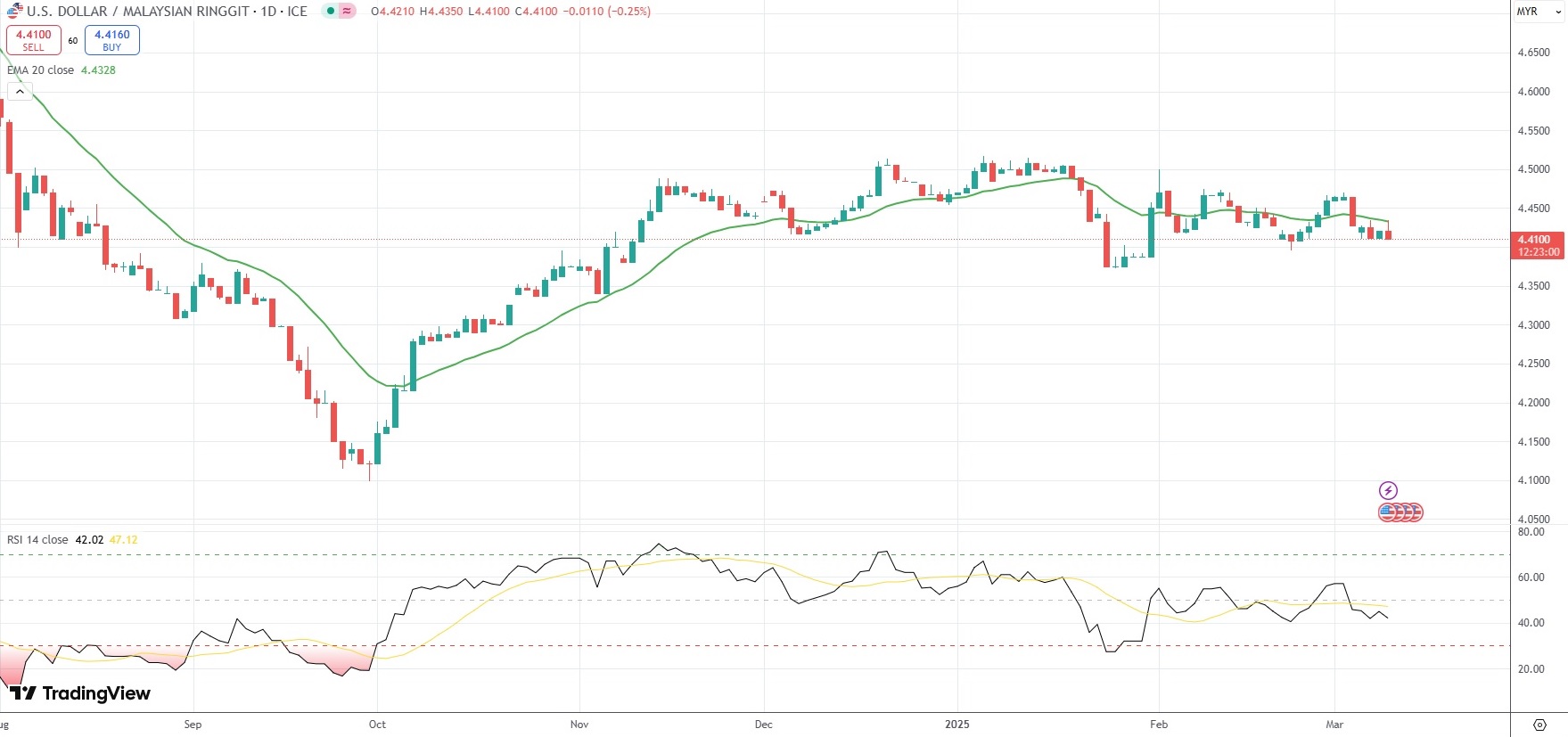 The USD/MYR currency pair was last down 0.25% on the day to trade at 4.4100.