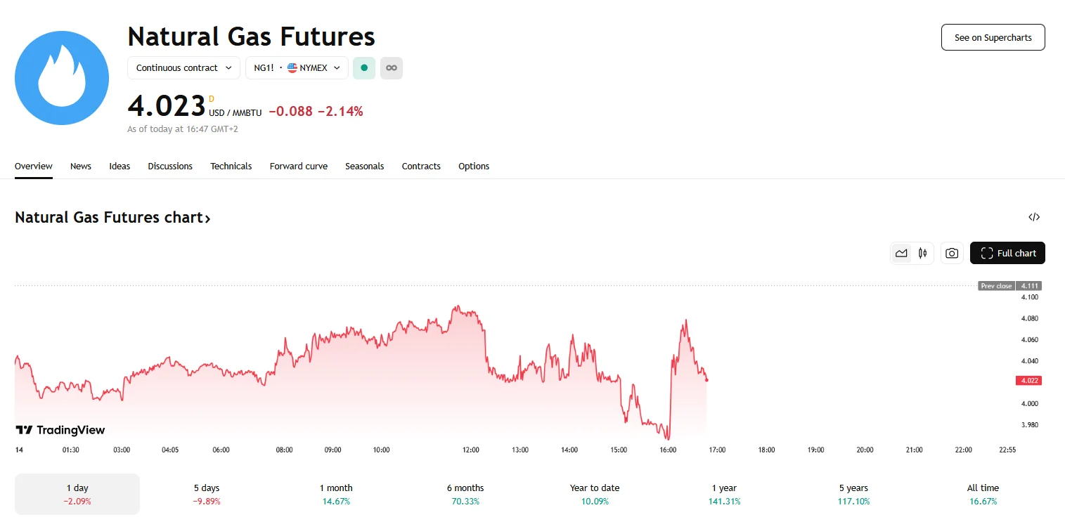U.S. Natural Gas Futures’ Price Dropped to a Notable Extent