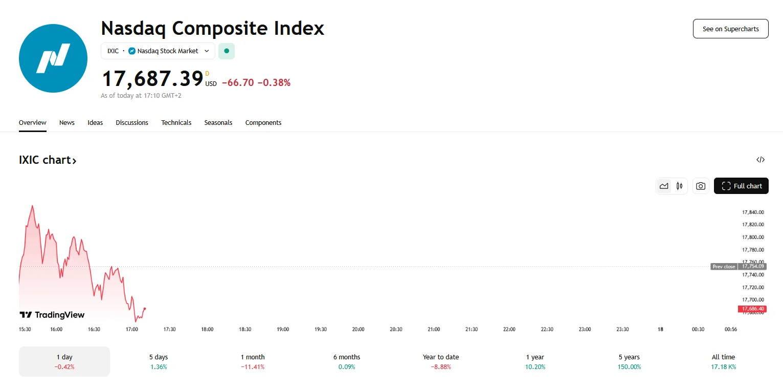 - The S&P 500 and Dow Jones posted gains on Monday, while the Nasdaq Composite experienced a 0.38% decline to below 17,690.