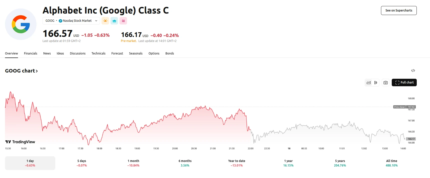 As of March 18, 2025, Alphabet shares trade at approximately 166 USD, a -0.63% change compared to the previous trading day. The company shares have registered a 3.56% rise within the last 6 months.