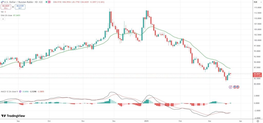 Earlier in March, the Russian Ruble had surged to highs unseen since late June 2023 against the US Dollar due to signs the US may restore economic ties with Russia.