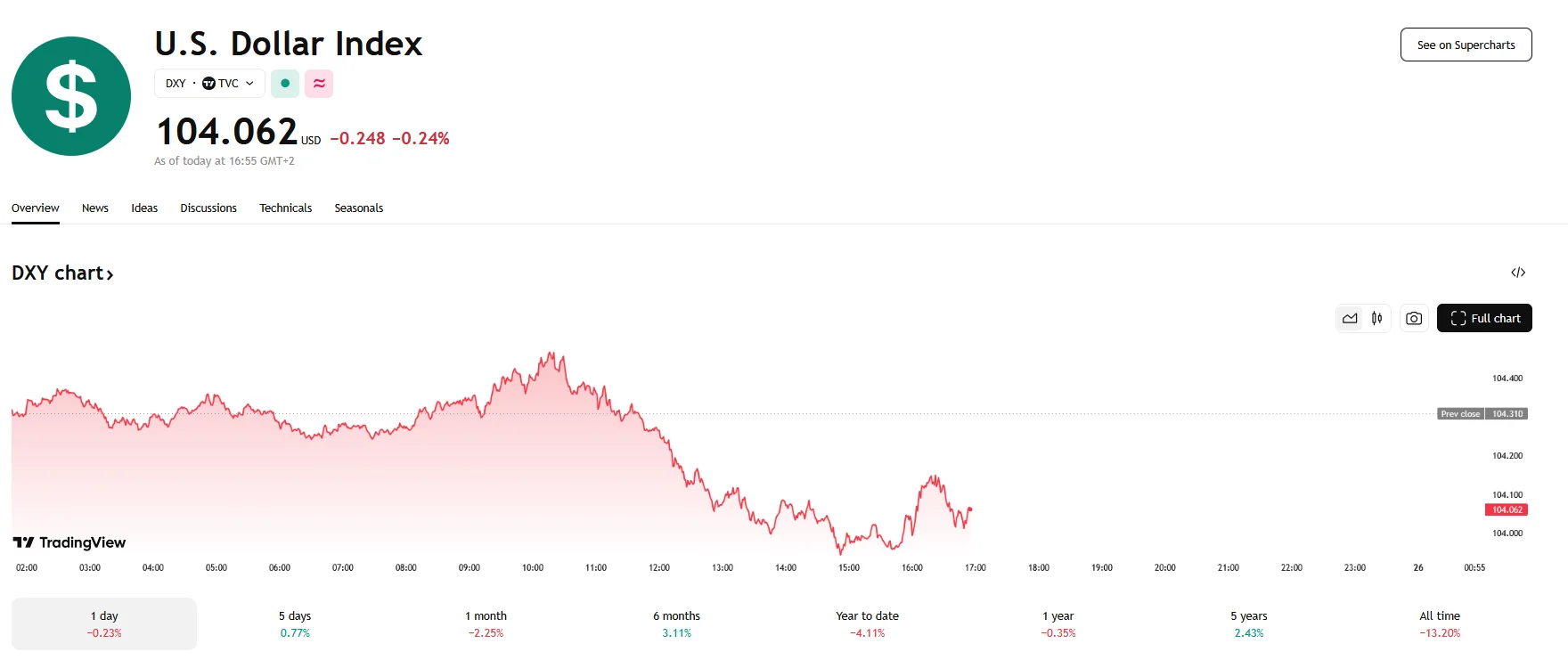 Despite the concerning data, major U.S. indices displayed relative stability. The S&P 500 is up by 0.29%, while the Nasdaq Composite climbed by 0.39% on Tuesday. The Dow Jones Industrial Average also witnessed a slight increase, gaining 0.20%. However, the U.S. dollar index fell by 0.24%, potentially reflecting weaker consumer sentiments’ implications for the U.S. economy.