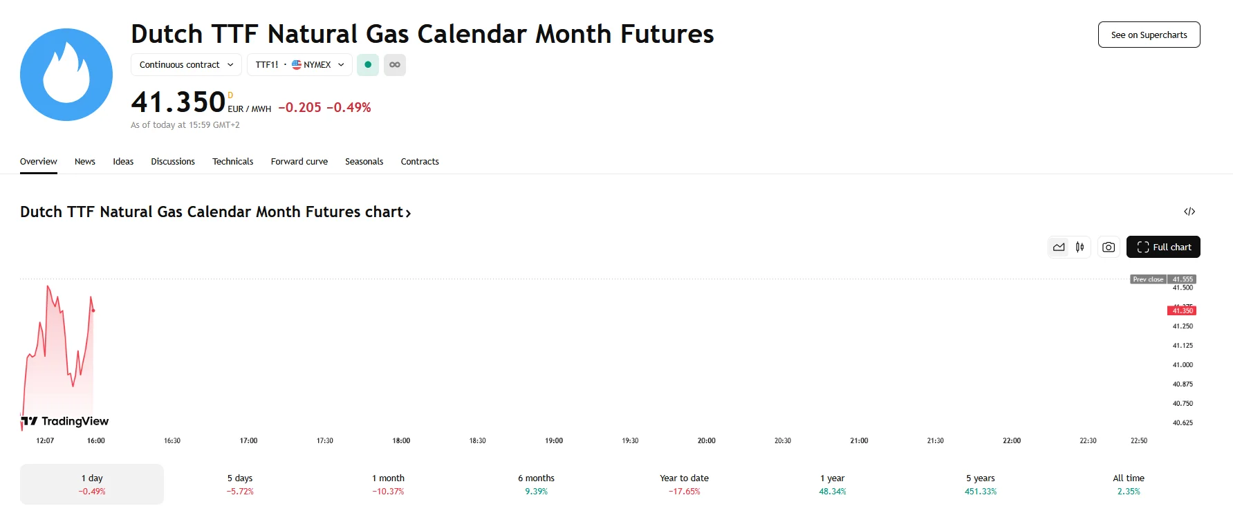 European and North American natural gas futures experienced contrasting price movements on Wednesday. The Dutch Title Transfer Facility (TTF) natural gas futures, a key indicator for Europe’s energy market, underwent a decline, registering a decrease of 0.49% to €41.350. This downward trend reflected a complex interplay of factors influencing European gas prices.