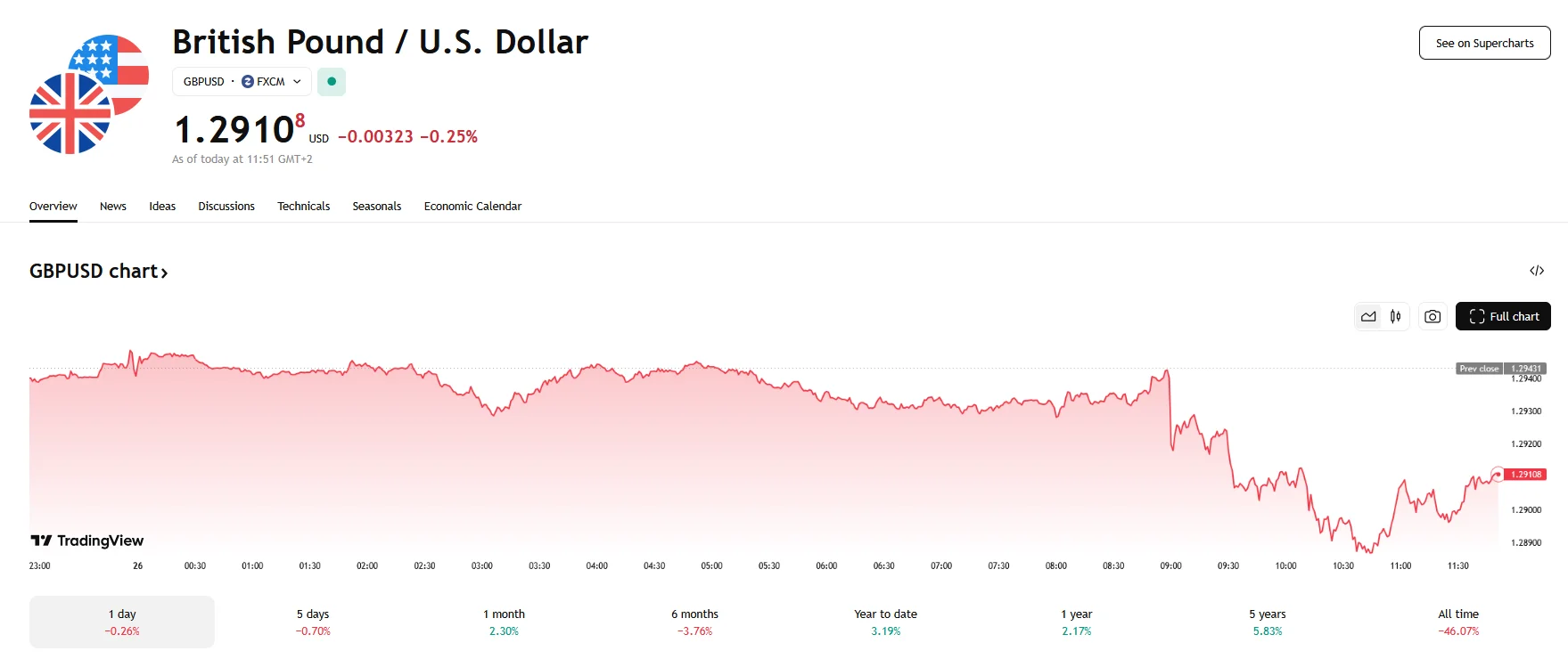 - The GBP/USD exchange rate fell to 1.2910 on Wednesday.