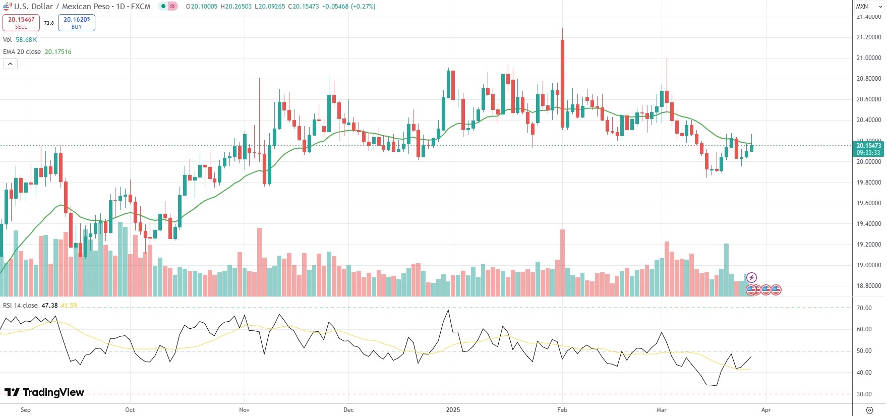 The USD/MXN currency pair was last up 0.27% on the day to trade at 20.1533.