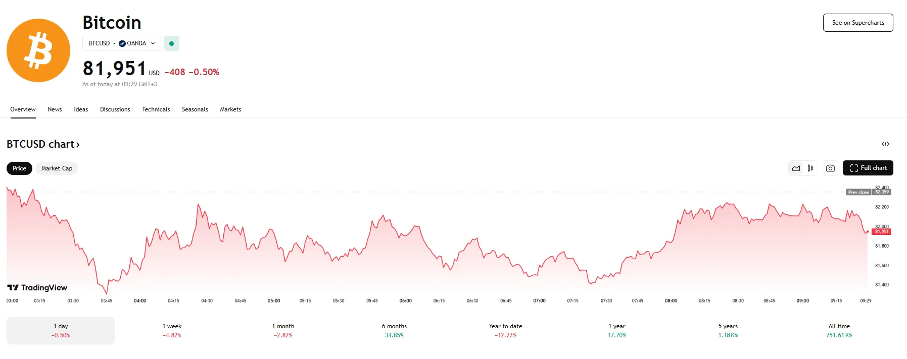 - Monday saw Bitcoin continue to decline, with the price reaching $81,951.