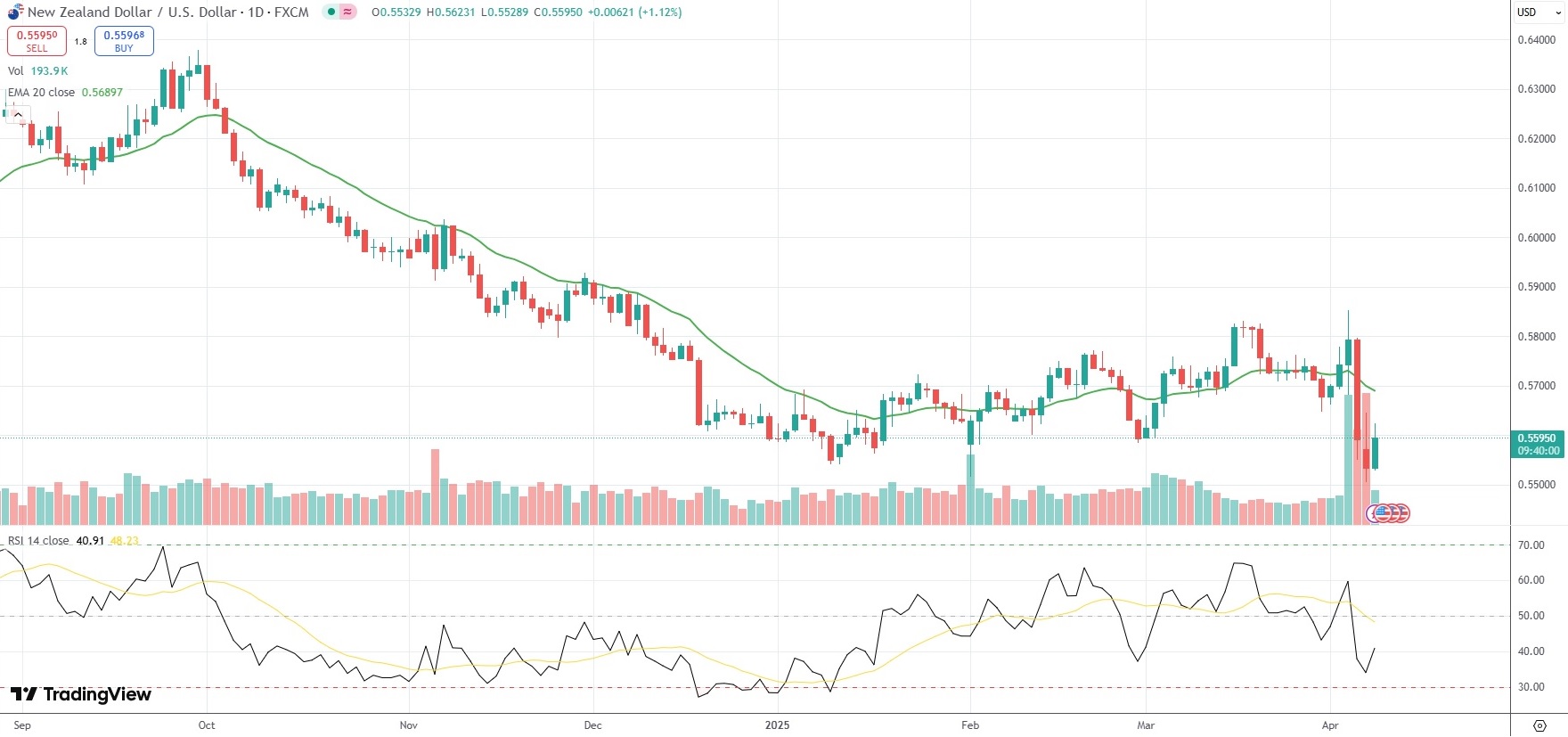 The NZD/USD currency pair rebounded from yesterday’s 60 1/2-month low of 0.5505 on Tuesday, as market players navigated shifting global trade dynamics ahead of the outcome of the RBNZ’s policy meeting on April 9th.