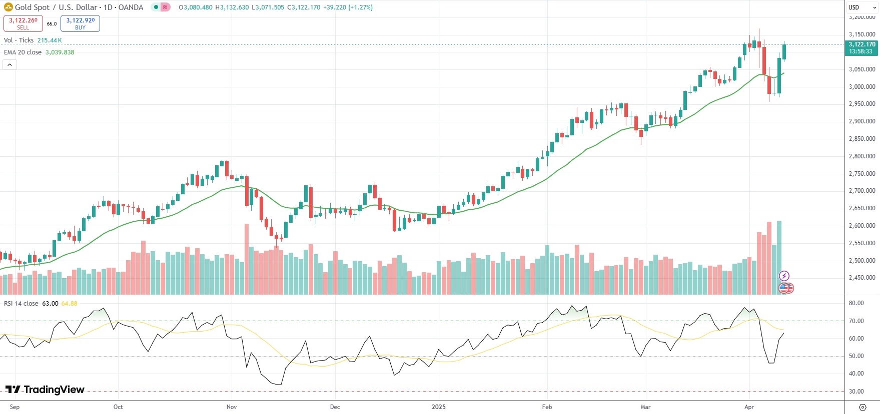 Spot Gold extended gains on Thursday, while holding within striking distance of record high of $3,167.57 per troy ounce, as market players rushed to the safe haven metal after the US increased tariffs on China – the latest escalation of the trade conflict between the two nations.