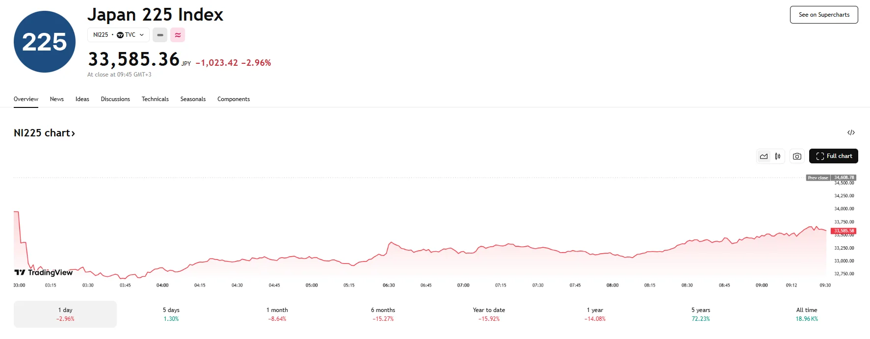 Japan’s benchmark Nikkei 225 index experienced a significant downturn, losing over 1,000 basis points during Friday’s trading session. The index ultimately closed with a loss nearing 3%, reflecting investor anxiety over the potential economic consequences of the heightened trade tensions, particularly how they will affect Japan’s export-oriented economy. Similarly, Australia’s S&P/ASX 200 index concluded the trading by falling 0.82%, while South Korea’s KOSPI index also registered a decline of 0.50%.