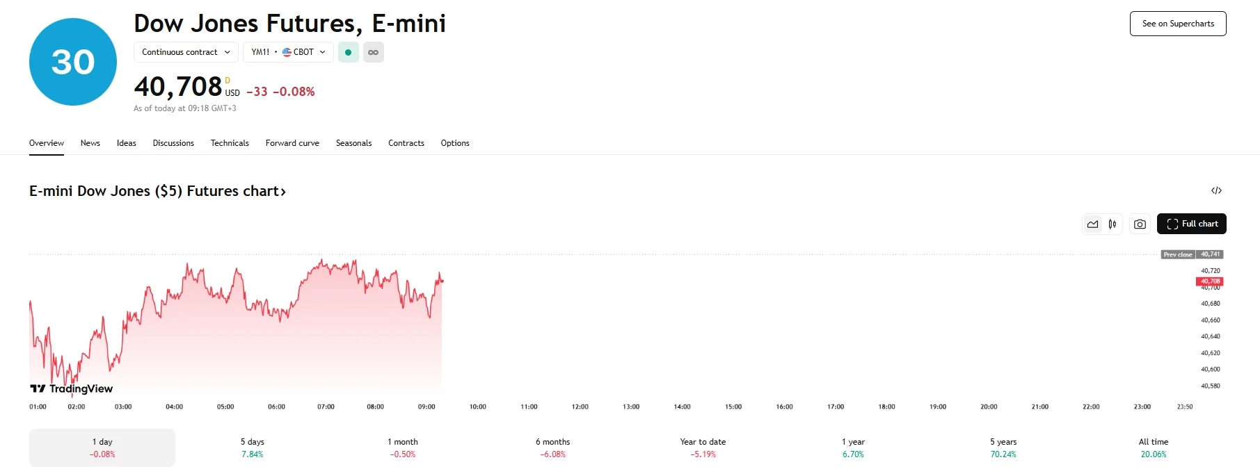 - E-mini futures for the Nasdaq 100, S&P 500, and Dow fell on Tuesday.
