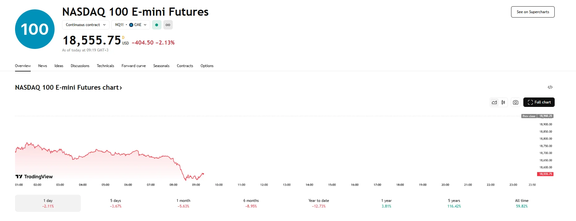 - Tech investors reacted negatively to the news, with Nasdaq 100 e-mini futures sliding 2.13% lower on Wednesday.