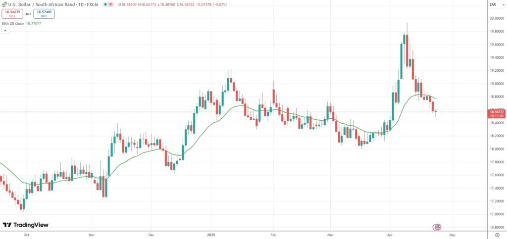 The USD/ZAR currency pair was last down 0.07% on the day to trade at 18.5672.