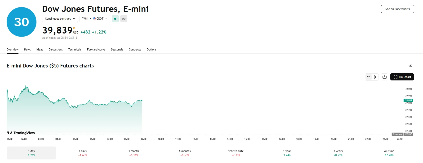 The positive effects of this development were immediately visible in the futures market. Dow e-minis surged by 1.22%, reaching 39,839, while S&P 500 e-mini futures also climbed, rising by 1.64% to 5,402. The Nasdaq 100 e-mini futures witnessed the most substantial gains, jumping nearly 2% to 18,741. Beyond the Fed’s leadership, Trump’s recent comments on tariffs continued to affect markets.