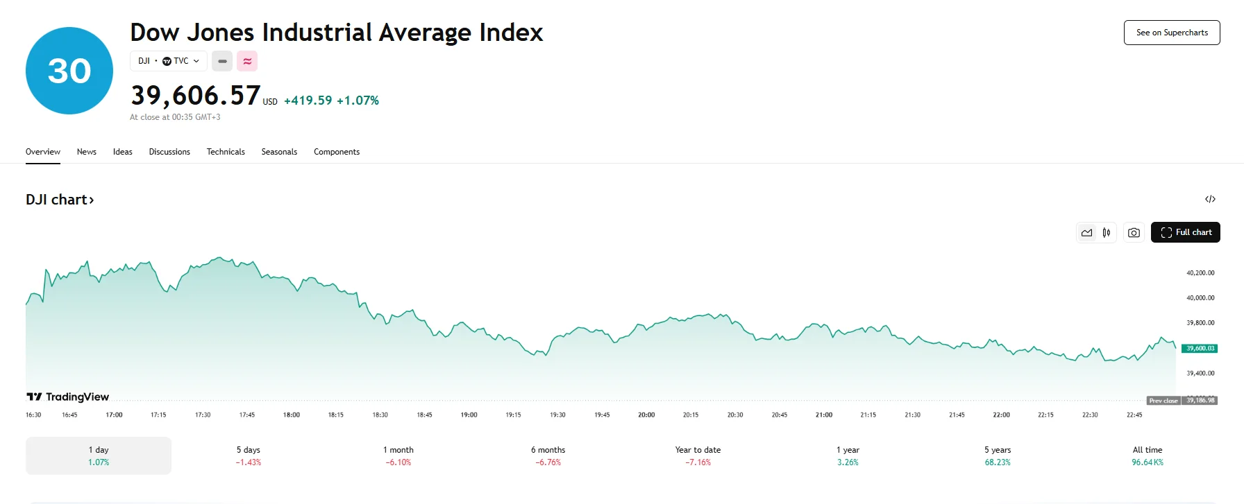 The Dow Jones Industrial Average was a key beneficiary of Wednesday’s rally, climbing notably by over 400 points. Specifically, the index advanced 419.59 points, marking a 1.07% increase to close the trading session at 39,606.57. Tech-centric indices also experienced substantial gains. The Nasdaq Composite surged by 2.50%, adding over 400 points, while the Nasdaq 100 mirrored this strength with a 2.28% rise. The broader S&P 500 index also participated in the advance, rising by 1.67% to finish the day at 5,375.85.