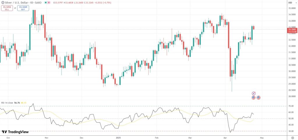 Spot Silver pulled back from a 3-week high of $33.68 per troy ounce on Thursday, as investors likely took profits after yesterday’s 3.3% rally.