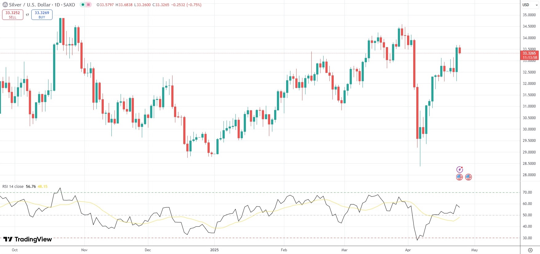 Spot Silver was last down 0.75% on the day to trade at $33.32 per troy ounce.