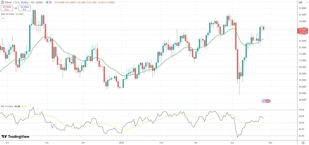 Spot Silver lost ground on Friday, but remained not far from a 3-week high of $33.68 per troy ounce, in light of the latest developments on the tariff front.