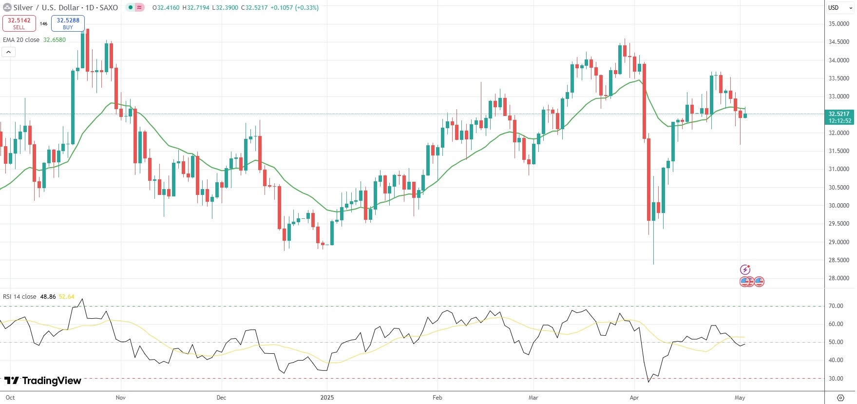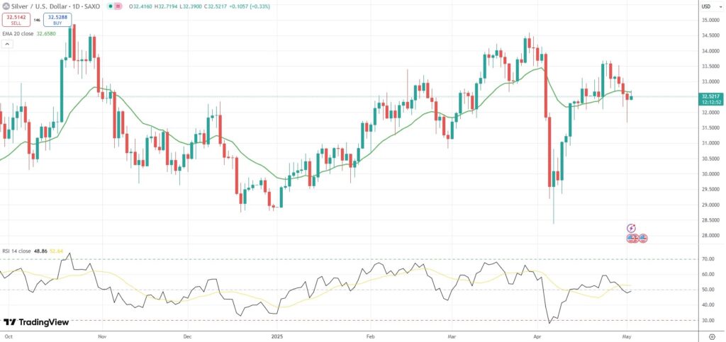 The white metal was attempting a rebound after three straight trading days of losses – mostly due to a firmer US Dollar, after the US economy unexpectedly contracted during the first quarter of 2025, according to a flash estimate.
