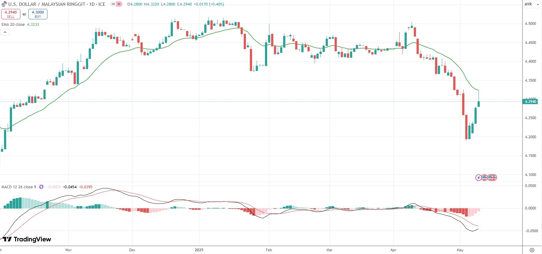 The USD/MYR currency pair settled 0.40% higher at 4.2940 on Friday.