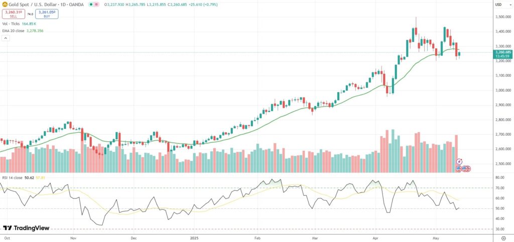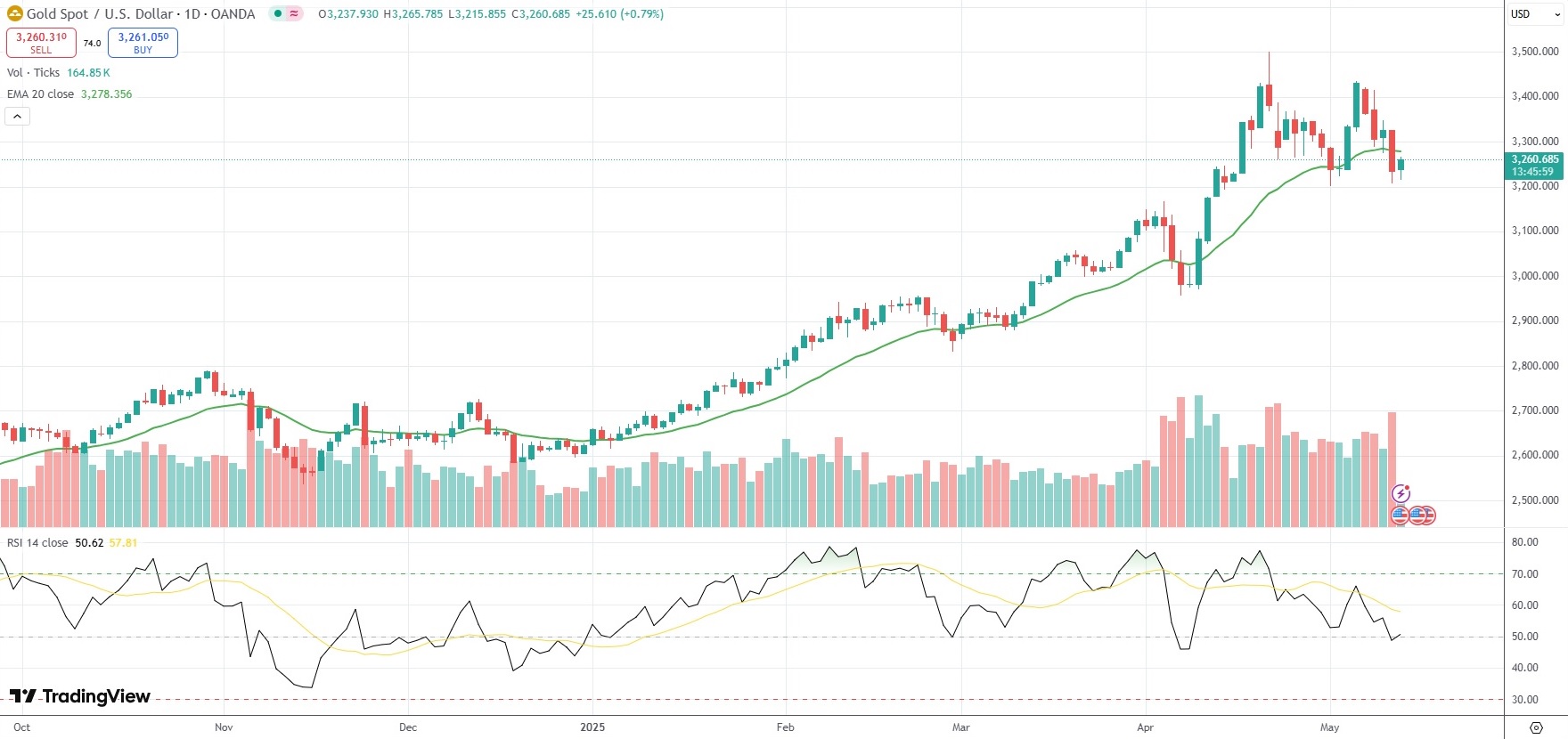 Spot Gold was last up 0.79% on the day to trade at $3,260.68 per troy ounce.