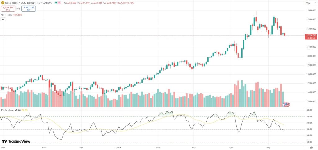 “I think that if we see continued progress in trade negotiations and deals being done between the US and its trading partners, gold can pull back further. $3,200 is a pretty critical level of support,” Capital.com’s financial market analyst Kyle Rodda was quoted as saying by Reuters.