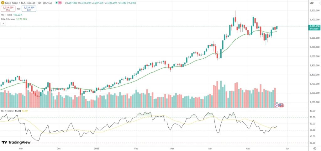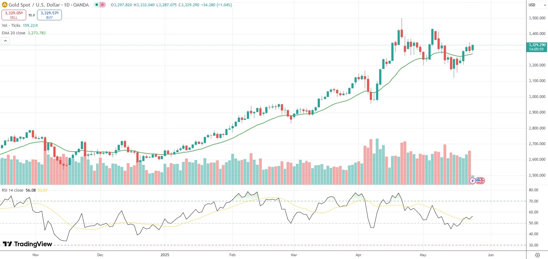 Spot Gold rose over 1% on Friday, holding in proximity to a 2-week peak of $3,345.45, and headed for a weekly gain amid lingering investor concerns over the US fiscal outlook.