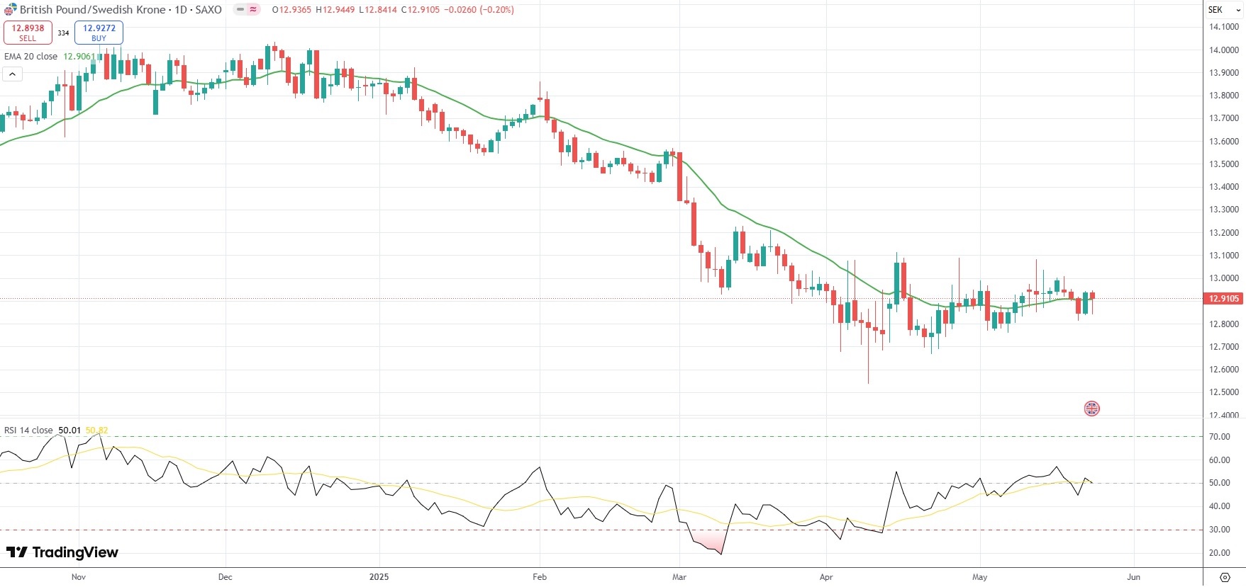The GBP/SEK currency pair settled 0.20% lower at 12.9105 on Friday.