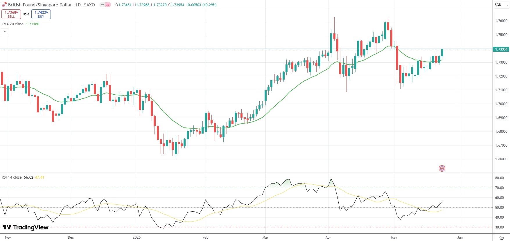 The GBP/SGD currency pair settled 0.29% higher at 1.7395 on Friday.