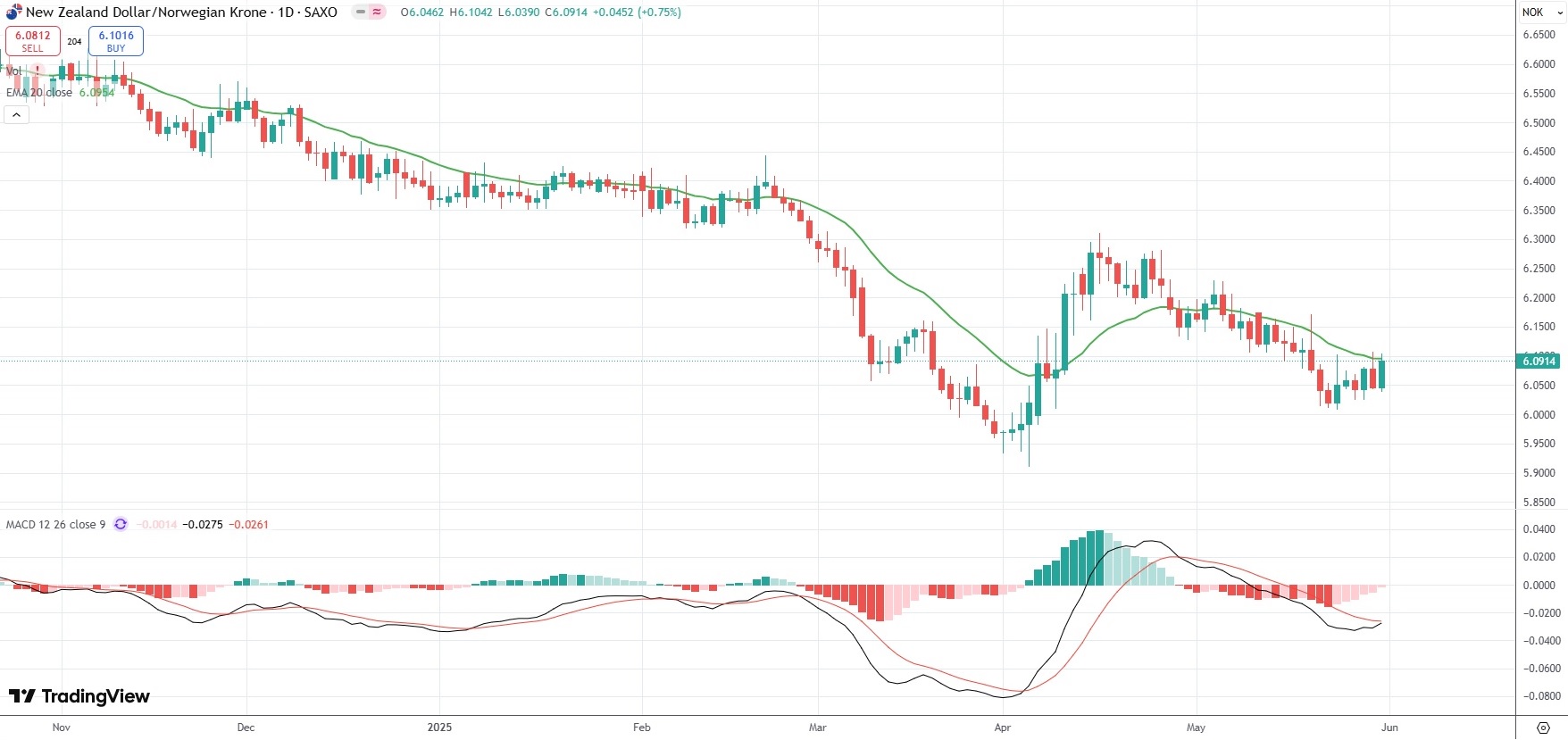 The NZD/NOK currency pair settled 0.75% higher at 6.0914 on Friday.