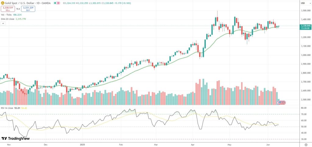 Spot Gold was last up 0.16% on the day to trade at $3,330.84 per troy ounce.