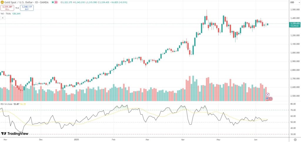 Spot Gold was last up 0.51% on the day to trade at $3,339.43 per troy ounce.