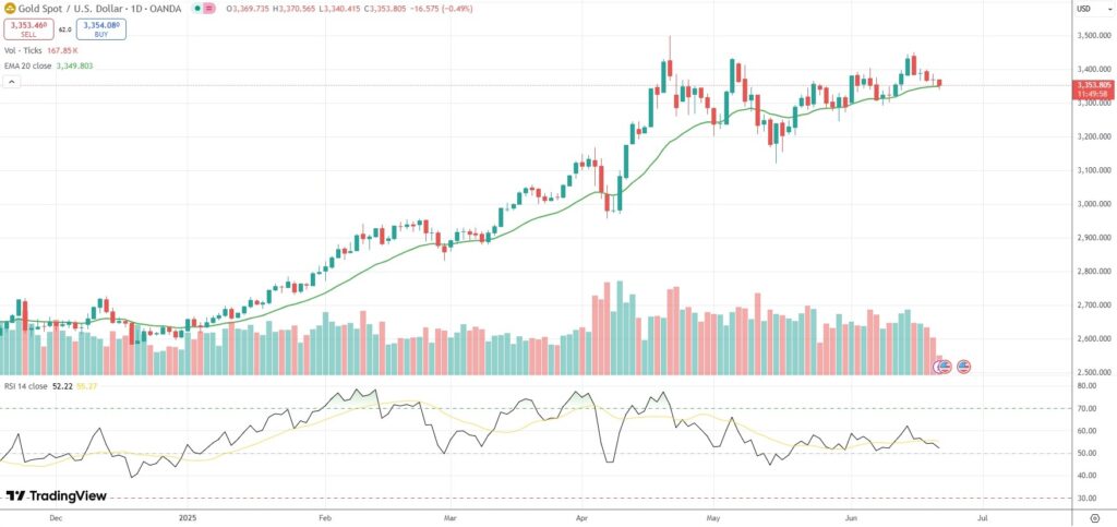 Spot Gold was last down 0.49% on the day to trade at $3,353.80 per troy ounce.
