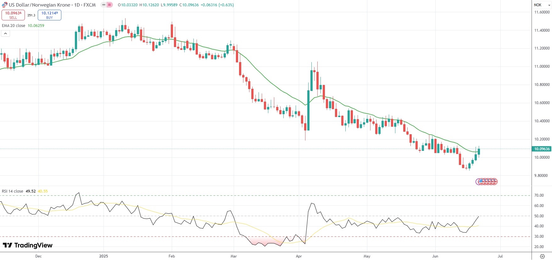 The USD/NOK currency pair settled above recent low of 9.8548, its weakest level since January 30th 2023, in the wake of Norges Bank’s and the Federal Reserve’s policy decisions.