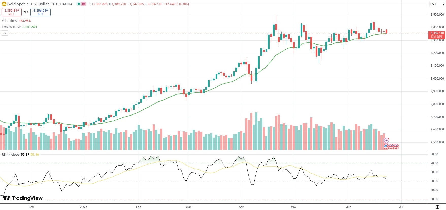 Spot Gold was last down 0.38% on the day to trade at $3,356.11 per troy ounce.