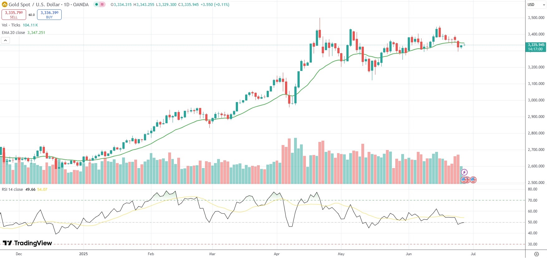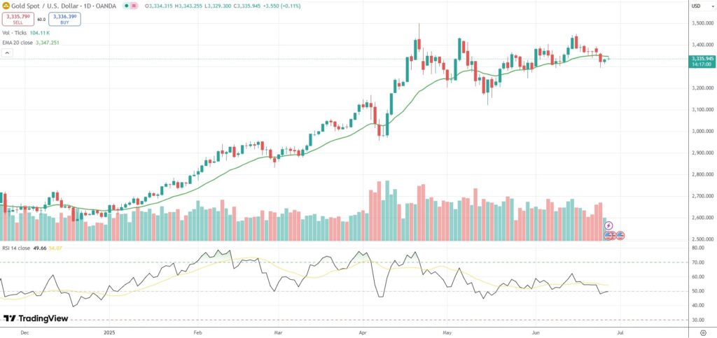 Spot Gold was last up 0.11% on the day to trade at $3,335.94 per troy ounce.