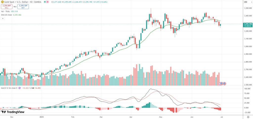 “There is less of a ‘doom and gloom’ outlook surrounding both tariff talks and events in the Middle East, which is relegating gold to play second fiddle to risk assets,” KCM Trade Chief Market Analyst Tim Waterer was quoted as saying by Reuters.