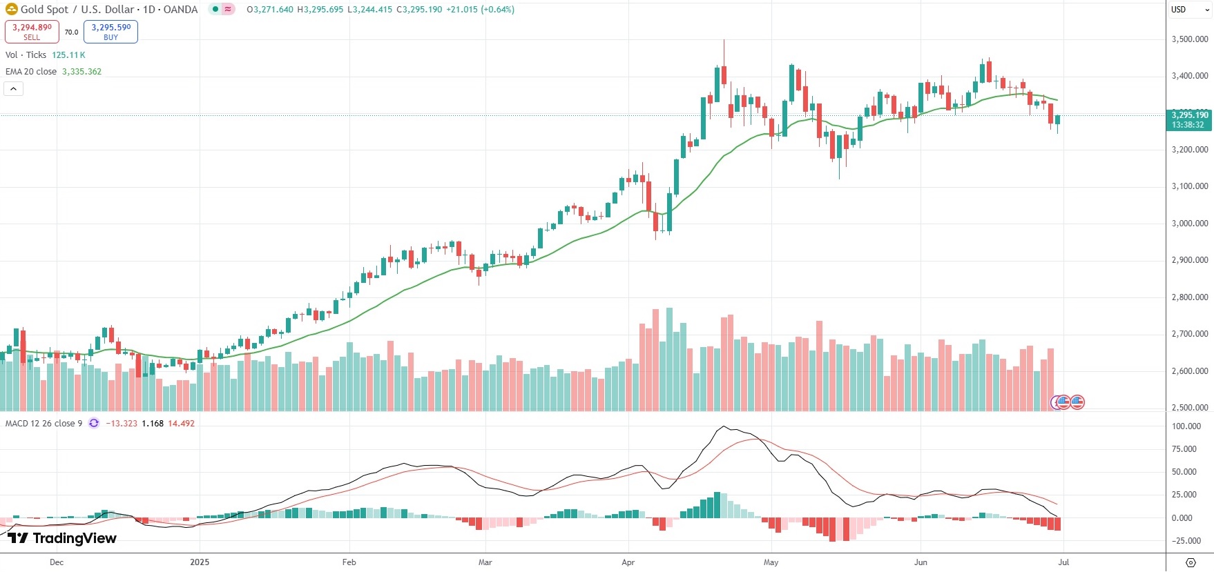 Spot Gold was last up 0.64% on the day to trade at $3,295.19 per troy ounce.