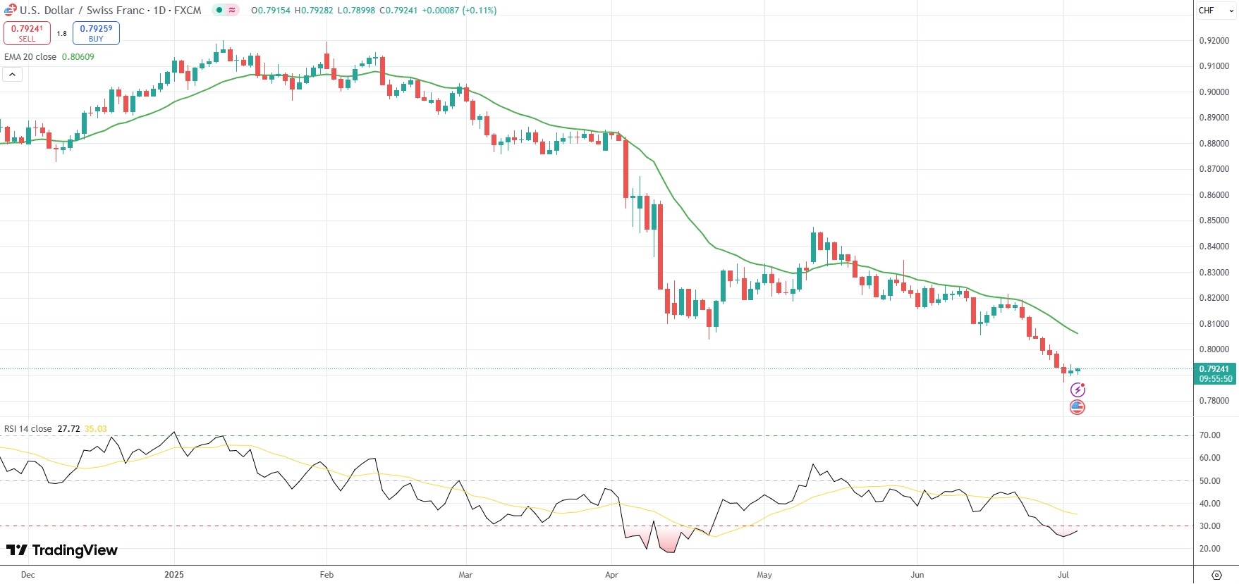 The USD/CHF currency pair hovered just above Tuesday’s low of 0.7871, its weakest level since September 2011, ahead of the key US Non-Farm Payrolls report later in the day, which may offer more insight into labor market conditions and the Fed’s future interest rate path.