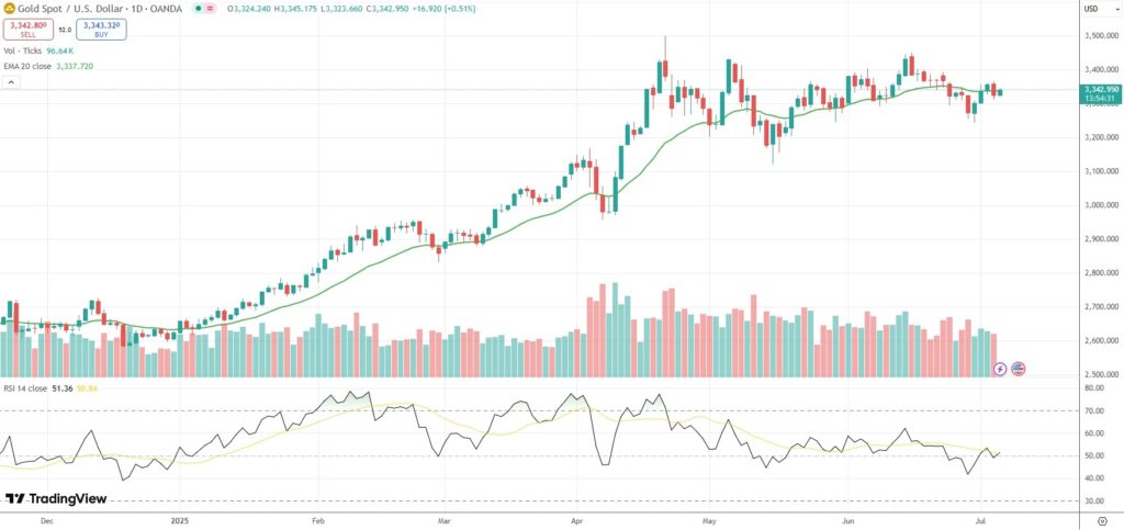 Spot Gold was last up 0.51% on the day to trade at $3,342.95 per troy ounce.