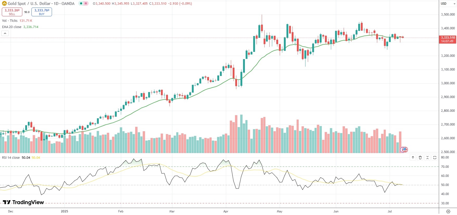 Spot Gold was last down 0.09% on the day to trade at $3,333.51 per troy ounce.