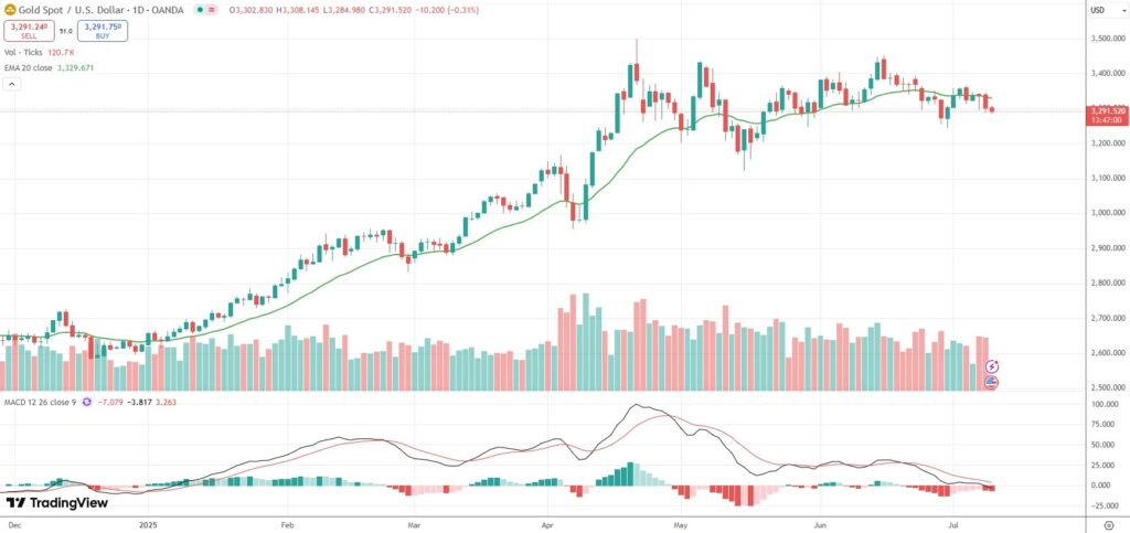 Spot Gold was last down 0.31% on the day to trade at $3,291.52 per troy ounce.