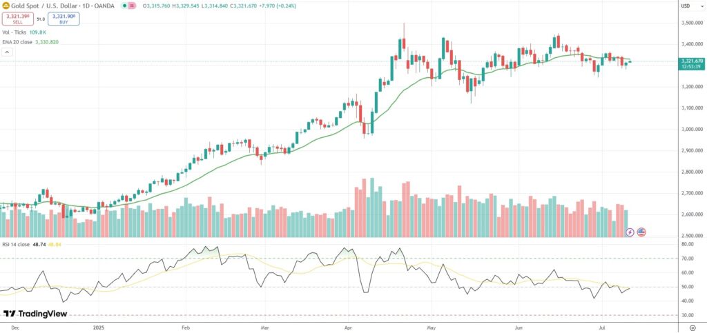 Spot Gold was last up 0.24% on the day to trade at $3,321.67 per troy ounce.