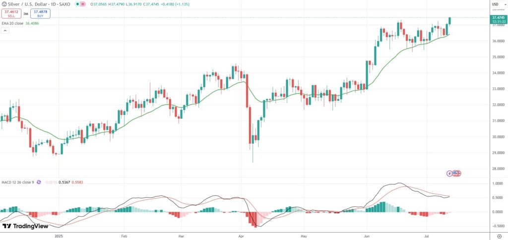 Spot Silver scaled a fresh high not seen in over 13 years on Friday, after the US slapped fresh tariffs on goods from Canada and warned of blanket duties on other trade partners, driving up safe-haven demand.