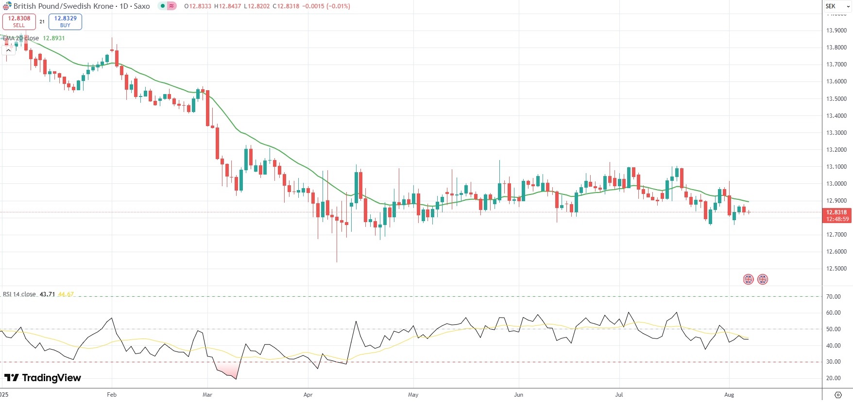 The GBP/SEK currency pair was last little changed on the day to trade at 12.8318.