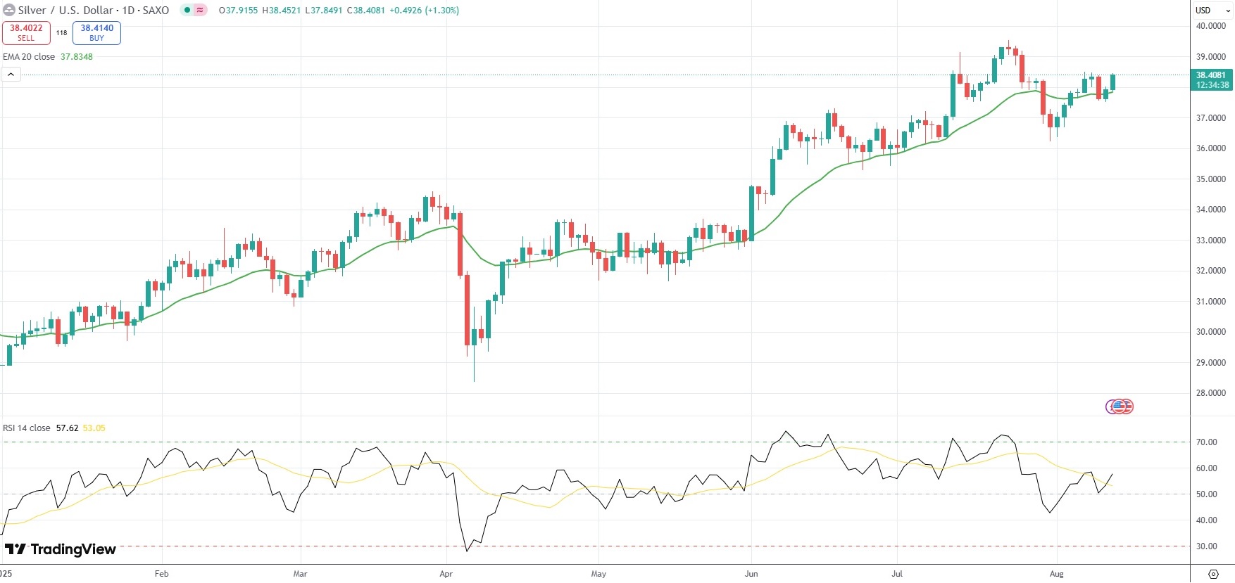 Spot Silver extended gains on Wednesday on the back of a softer US Dollar, as the latest US CPI inflation data added to expectations of an interest rate cut by the Federal Reserve in September.